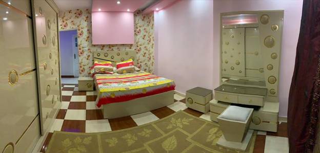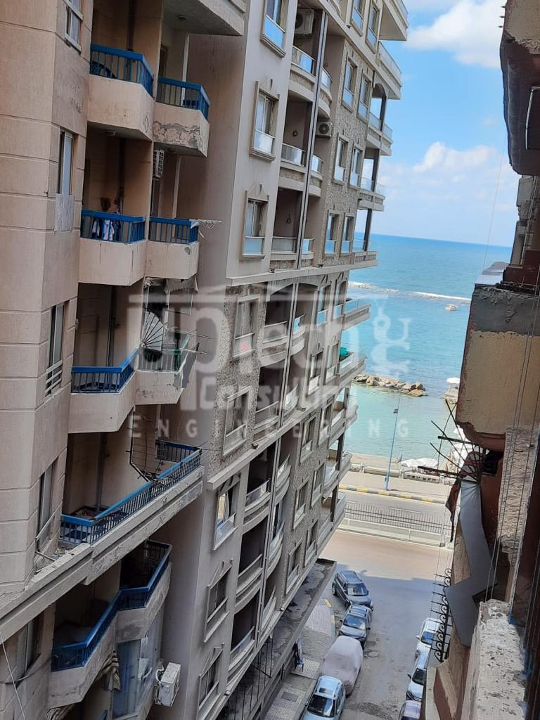 شقة مفروشة للايجار فيو بحر بالكامل تشطيب سوبر لوكس ٣ غرف كبار ومطبخ كبير و ٢ حمام صالون ٥ قطع وبلكونة + فراندا كبيرة تطل علي البحر مباشرة